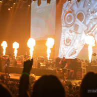 Scéna pak o mnoho více ožila při šesté písni v pořadí, což byly známé Pohyby. V jejím úvodu se za muzikanty promítal známý klip s modelkou Terezou Maxovou, ovšem zhruba ve třetině spadlo již dříve zmíněné plátno s dívčími tvářemi a odkrylo celou obří LED stěnu, která se ukrývala za kapelou. V tu chvíli se v prostřihu změnila i animace klipu s Terezou Maxovou v již aktuálním, avšak černobílém provedení, které bylo natočeno speciálně pro toto turné. Od té chvíle už měl koncert grády a bylo se i na co dívat. Scéna sice nebyla nijak složitě navržená, dominovala jí právě tato obří obrazovka s pestrými animacemi a jinak vizulní zážitek doplňovaly klasické šlehající ohně, na nichž produkce neštřila a dýmová děla. O bohatém světelném ansáblu snad u této kapely nemůže být pochyb. Nebyl zde sice žádný moment, který by vyloženě posadil člověka na zadek, ovšem už jenom to, že tito muzikanti hrají opět pospolu a dokážou dělat takto velkolepé koncerty je asi dostačující. Asi už nemusí nikomu nic dokazovat, ani létat s bicími nad hlavami diváků, jako při comebackovém turné z roku 2014. Tentokrát šlo o to, představit nové album a ujistit fanoušky, že kapela stále funguje a je pořád v dobré formě.